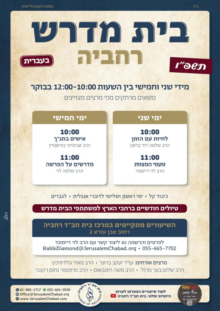 בבית חב"ד רחביה ונחלאות📍 אבן עזרא 2 – ירושלים