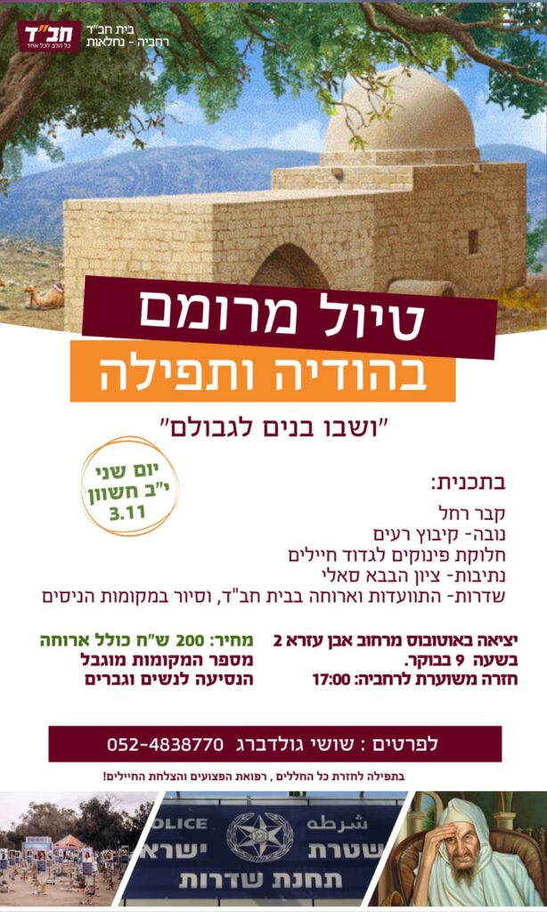 * שדרות – התוועדות וארוחה בבית חב"ד וסיור במקומות הניסים *